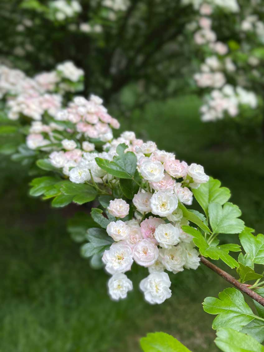 to the pond and a summer house, Carolyn decided that ‘prunus is suburban’ and used a sophisticated version of the hawthorn that pops up in hedgerows