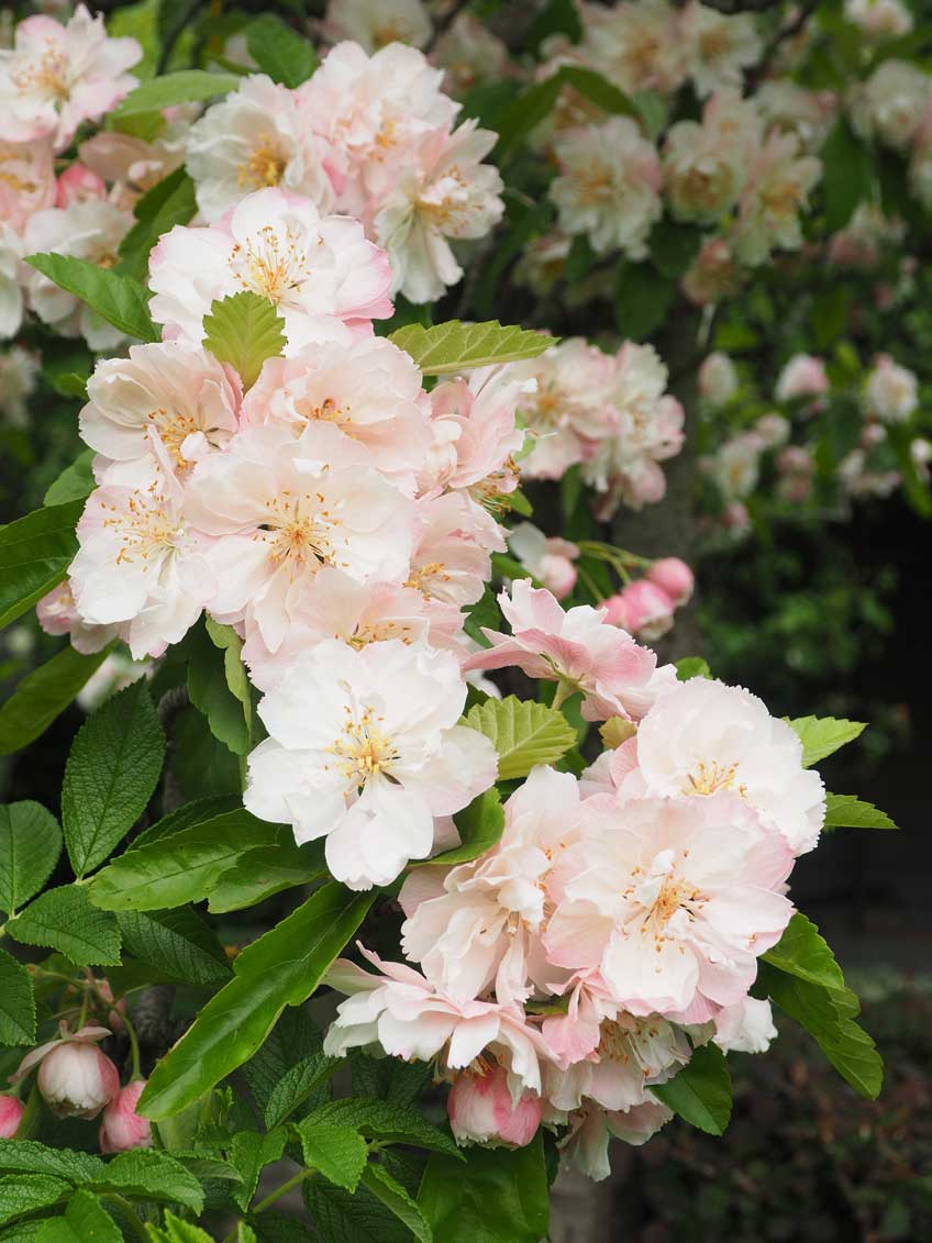 On the other side of the potager a gate opens on a long avenue of the statuesque crabapple, Malus tschonoskii, chosen for its upright form, which
