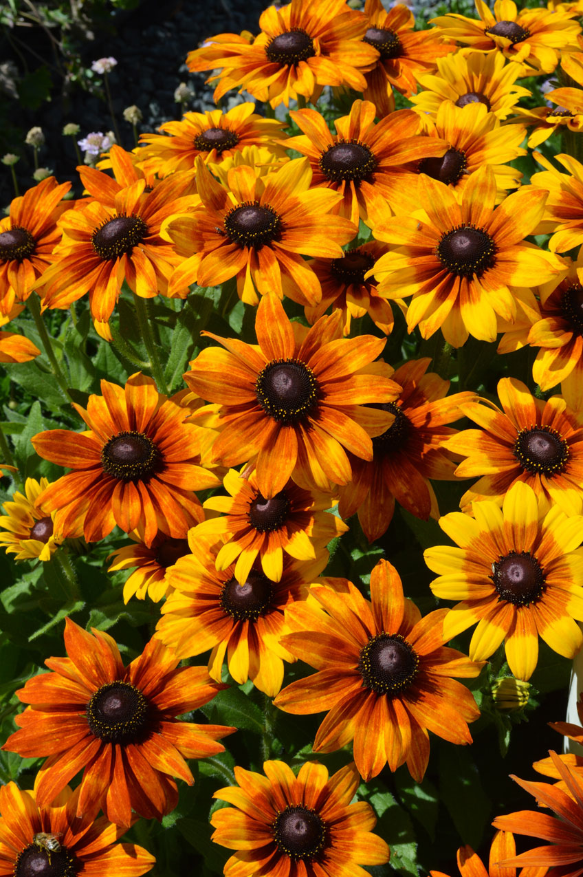 range of rich oranges, rusty browns and mellow yellows with dark centres. As a bonus, the flowers attract bees and beneficial insects. The one here