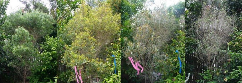 Rapid decline of the Endangered Rhodamnia angustifolia caused by repeated myrtle rust infection. Photo - PBCRC