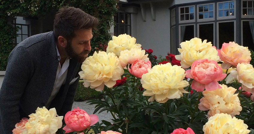 Michael McCoy enjoys the peonies in Marlborough, New Zealand