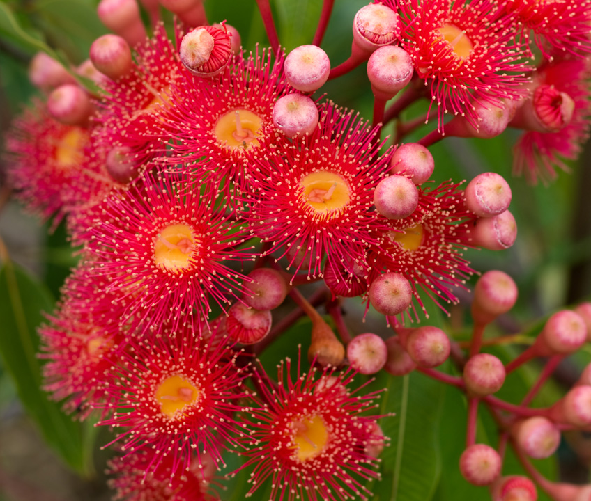 Take in the Christmas reds of the Australian bush in the Illawarra flame tree, NSW Christmas bush and of course the show-stopping flowering gums.