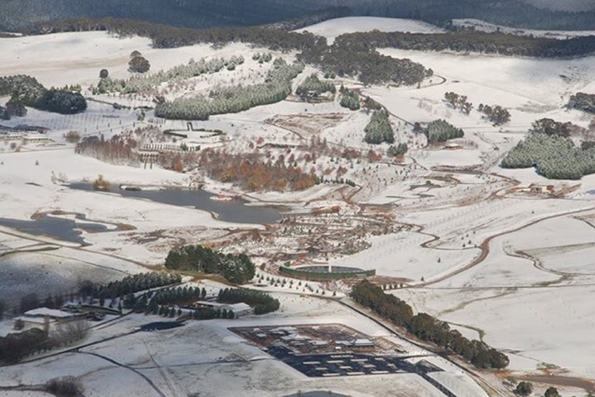 Mayfield garden from the air on Saturday after overnight snowfall. Photo - Central West Flying School