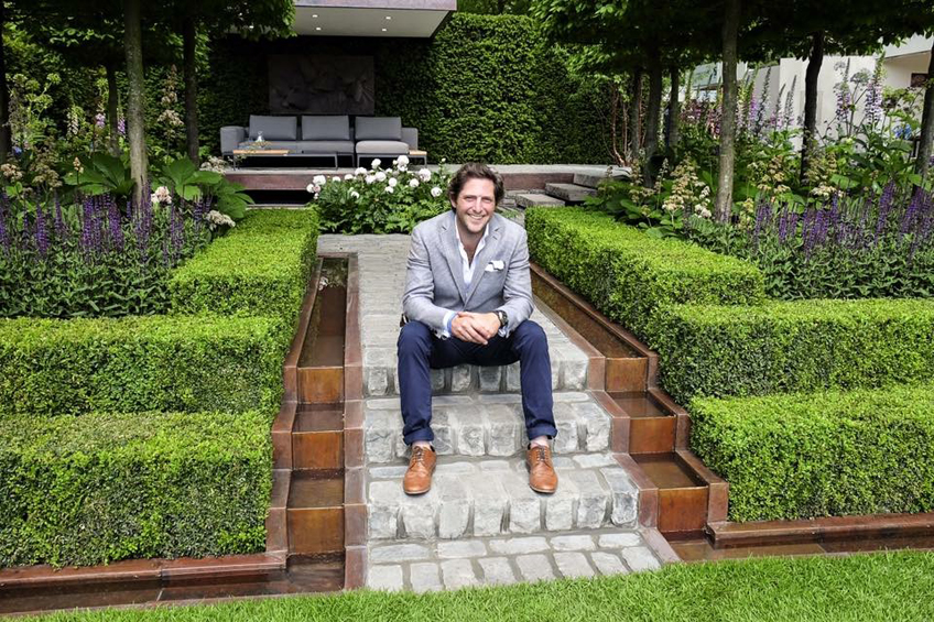 Silver gilt winner, Charlie Albone in his Chelsea Flower Show display garden.