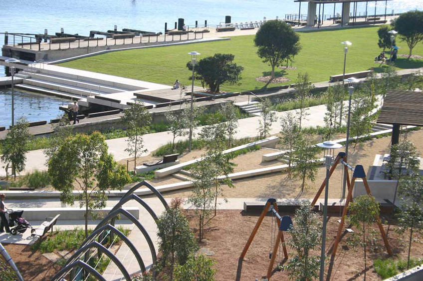 The park’s award winning design, developed by consultants Aspect Sydney, Hill Thalis, CAB Consulting, Connell Wagner and TLB Engineers, also celebrates