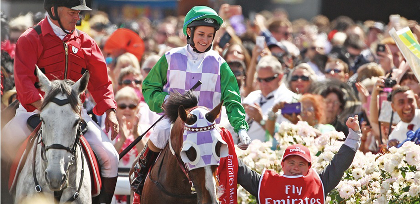 The stunning roses at Flemington race course will be in full flower for The 2016 Melbourne Cup. 2015 cup winner Michelle Payne riding Prince of Penzance. Photo - Scott Barbour / Getty Images