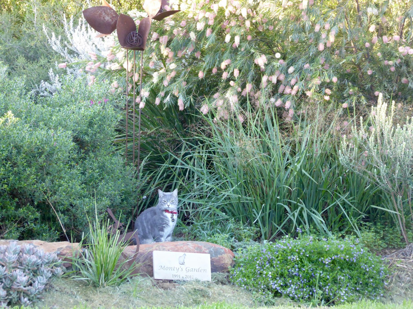 Callistemon 'Injune', and Smokey they cat. Photo - Peta Trahar