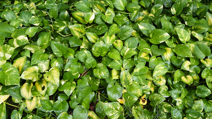 The plant has a multitude of common names including golden pothos, hunter's robe, ivy arum, money plant, silver vine, Solomon Islands ivy and taro vine.
