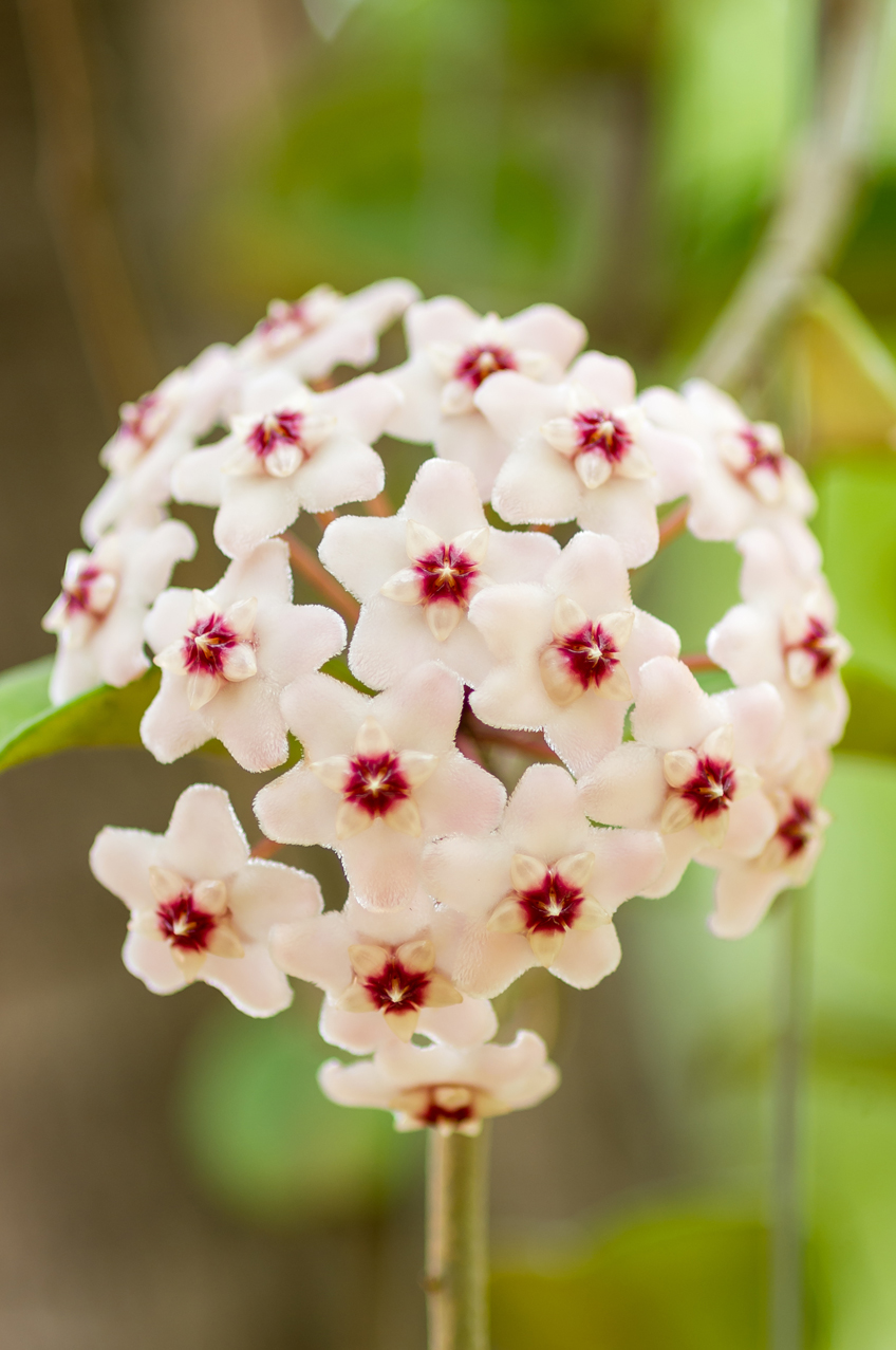 The best known hoya is the one shown here, Hoya carnosa, which perhaps you know as ‘wax plant’, or even, ‘that weird thing Gran had in the glasshouse’.