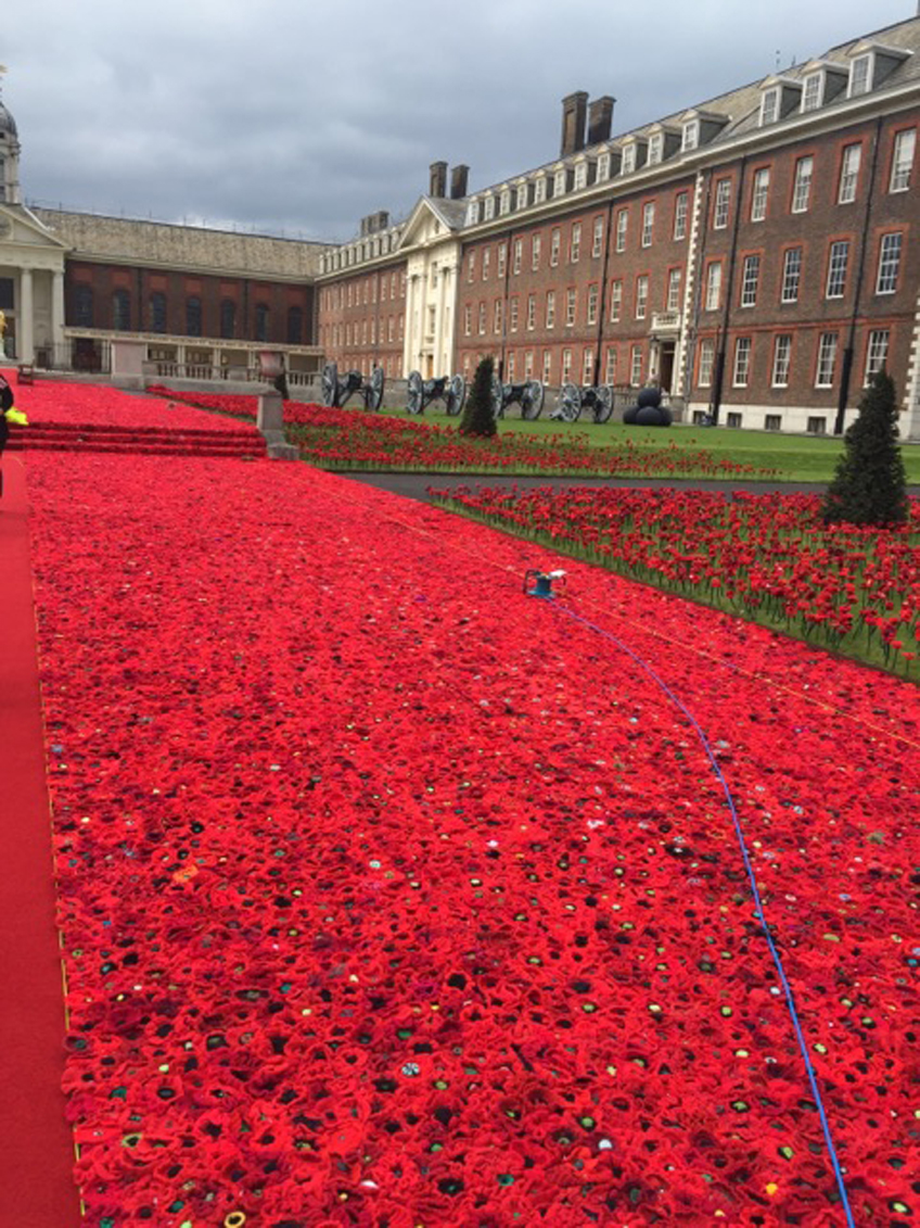 The carpet of crochet poppies at the 2016 Chelsea Flower Show. Photo - Graham Ross