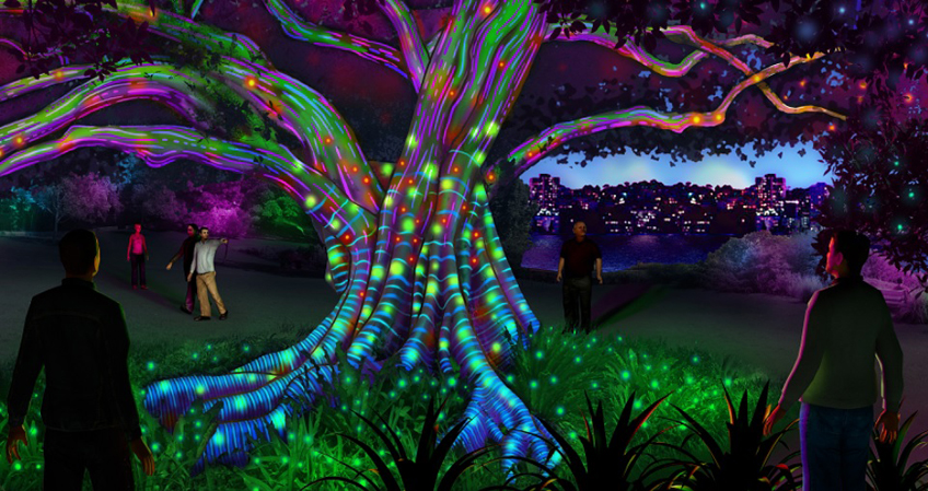This year Vivid Sydney is celebrating the 200th birthday of the Royal Botanic Gardens. Image - Vivid Sydney