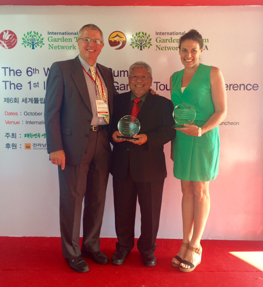 Professor Richard Benfield (president of the International Garden Tourism Network), Dr Kiat Tan (winner of the Garden Tourism Person of the Year, from Singapore Gardens By The Bay), and our own Linda Ross, winner of Garden Tourism Website of the Year