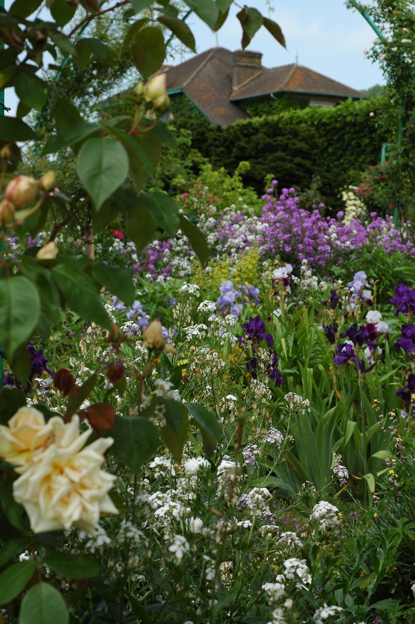 Rose companions - honesty and iris at Giverny. Photo - Linda Ross
