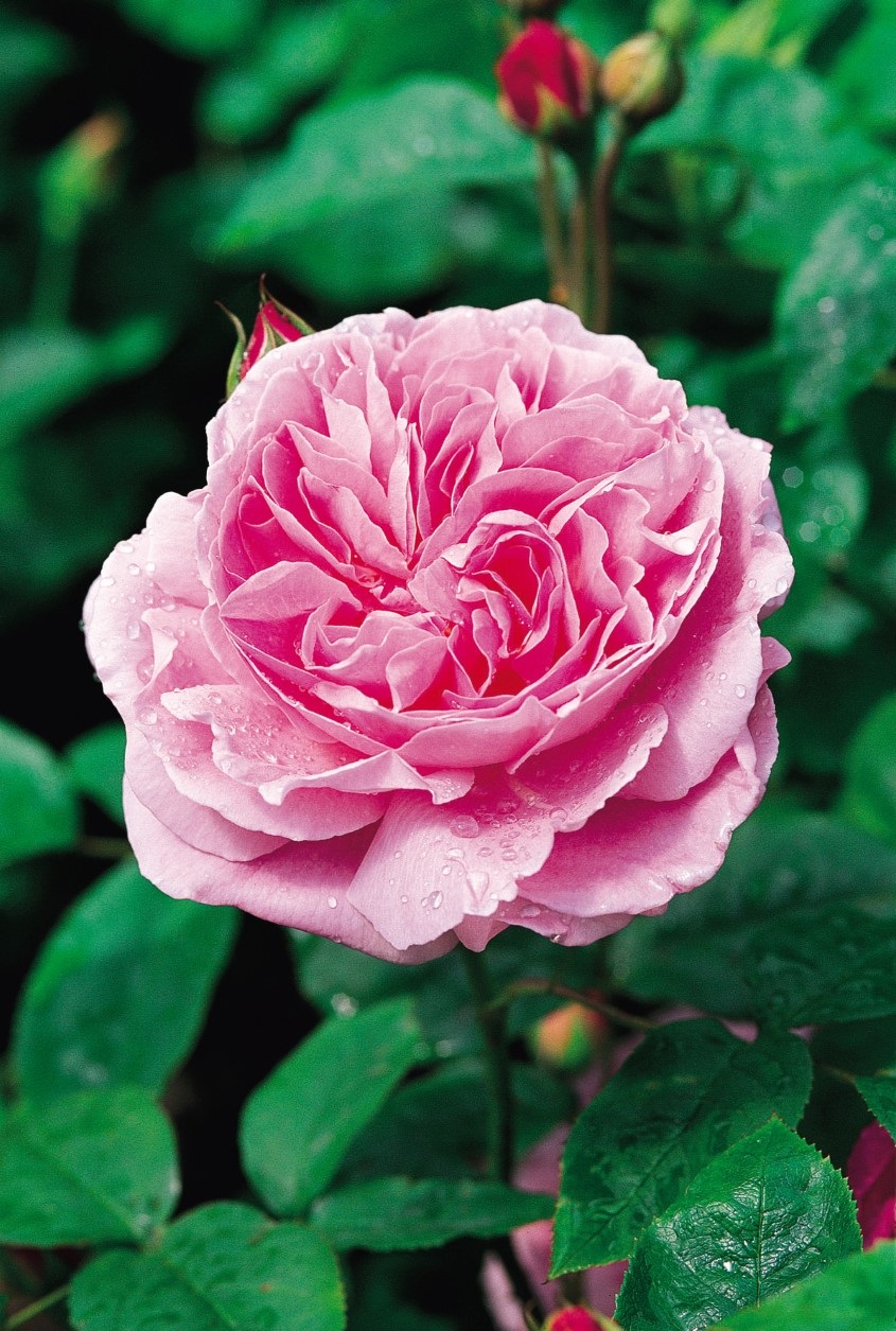 ‘Mary Rose’ (English Rose): a clear pink multi-petalled rose, one of the of the most widely grown English Roses. It forms a good bushy
