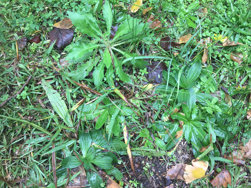 Plantain flat weed (L), fleabane (R), Dandelion & Plantain (below)