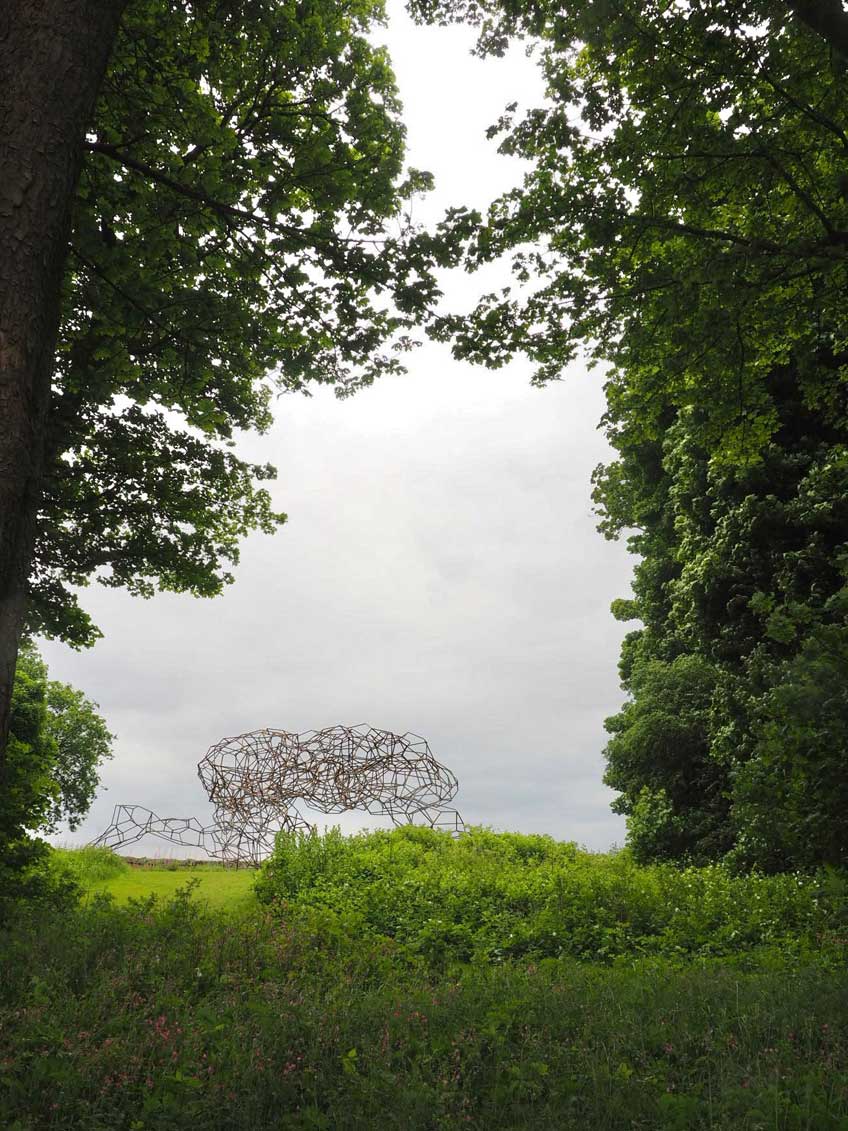 Other artworks weren’t built on site, instead their position was chosen by the artist in collaboration with the Wilsons. So Antony Gormley’s giant steel