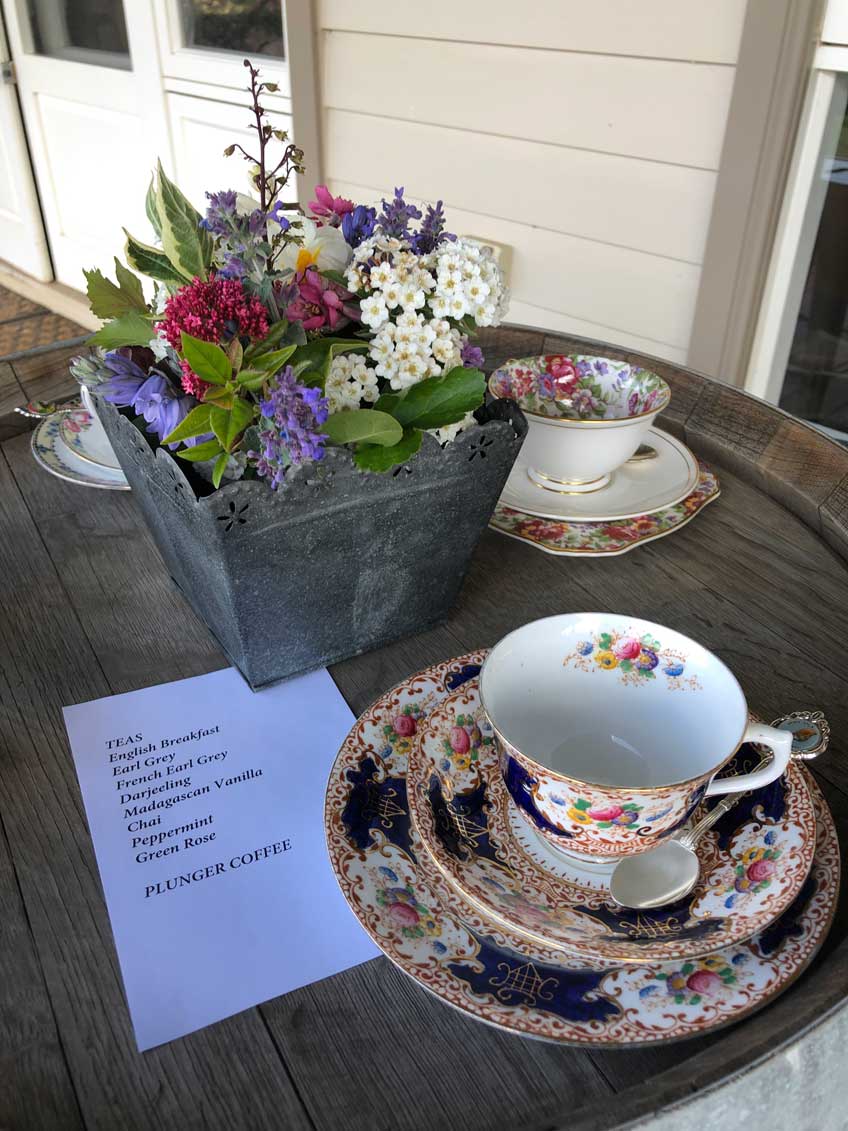 The verandah looking over the garden was all done up for our afternoon tea, with cute little teapots and macarons, fruit cake and dear little lemon tarts.