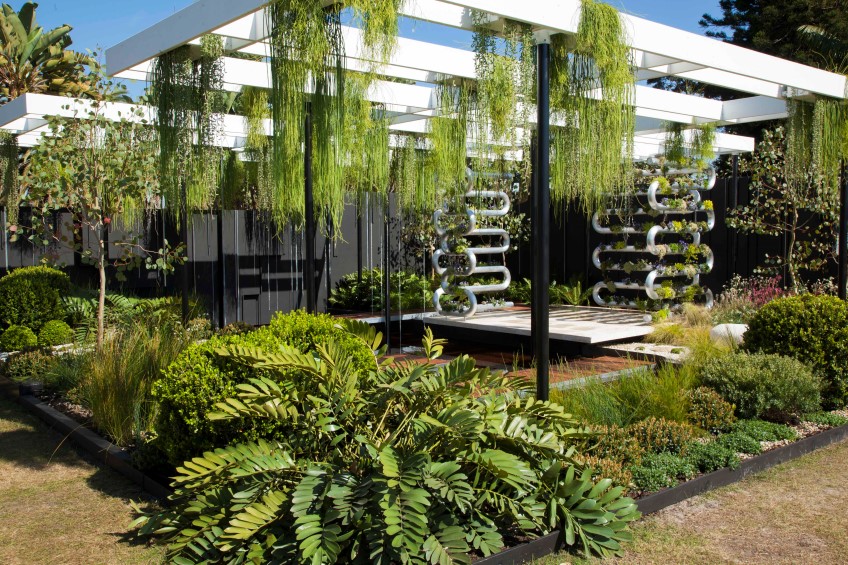 The huge show garden designed by Myles Baldwin called Sydney Gardenesque was Myles to a 'T': exuberant but restrained; traditional yet risky, familiar