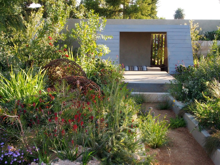 The planting was also inspired, with spots of blood-red bottlebrush and red kangaroo paw among coastal plants like coastal banksia, which served to draw