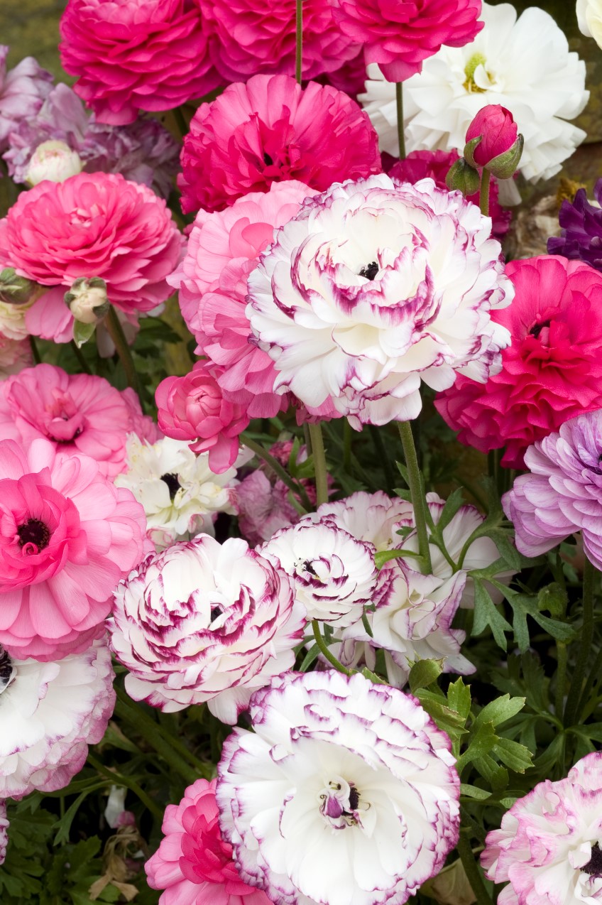 red, burgundy and white. There are also some single colours. www.tesselaar.net.au/ranunculus.
