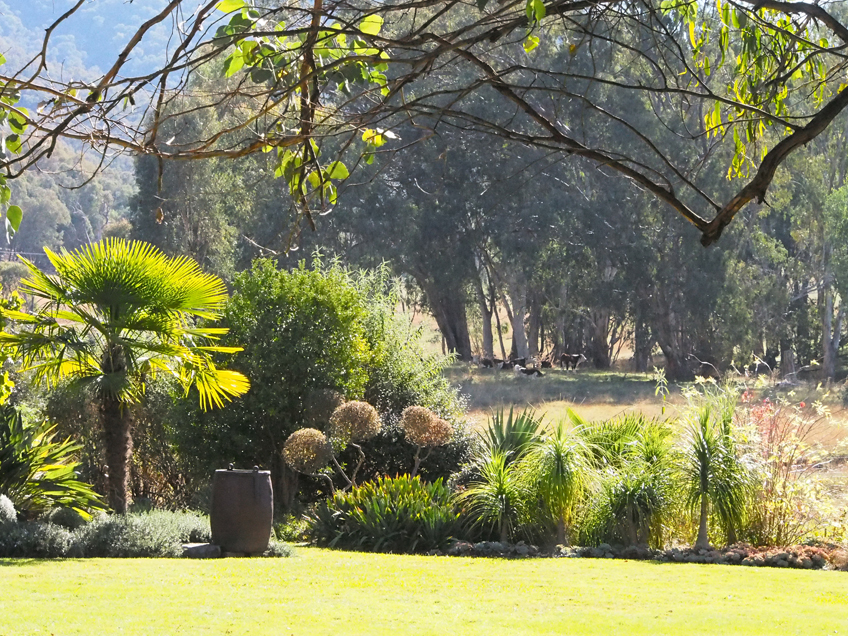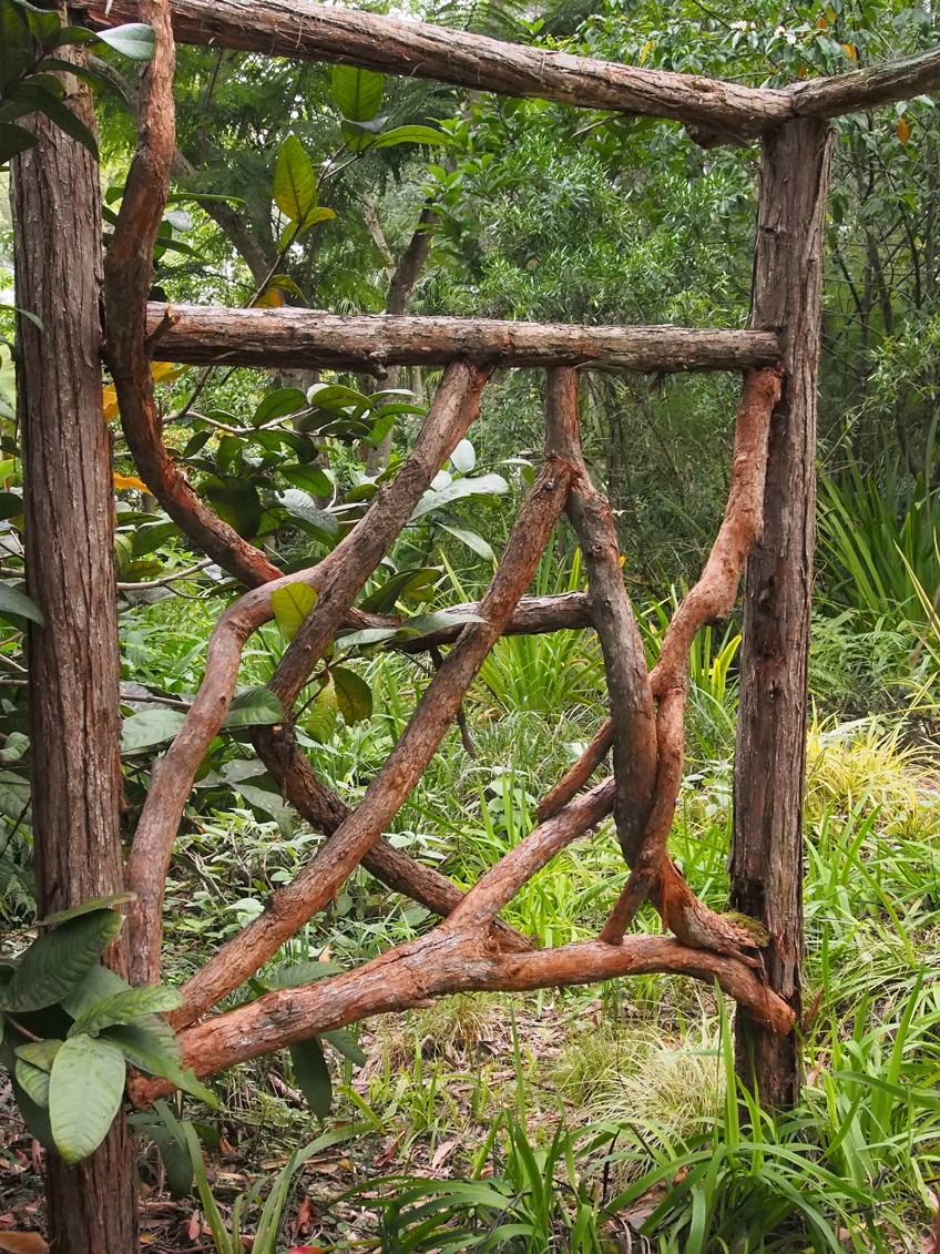 Pergola of prunings at Cheryl Boyd's 'Stringybark'