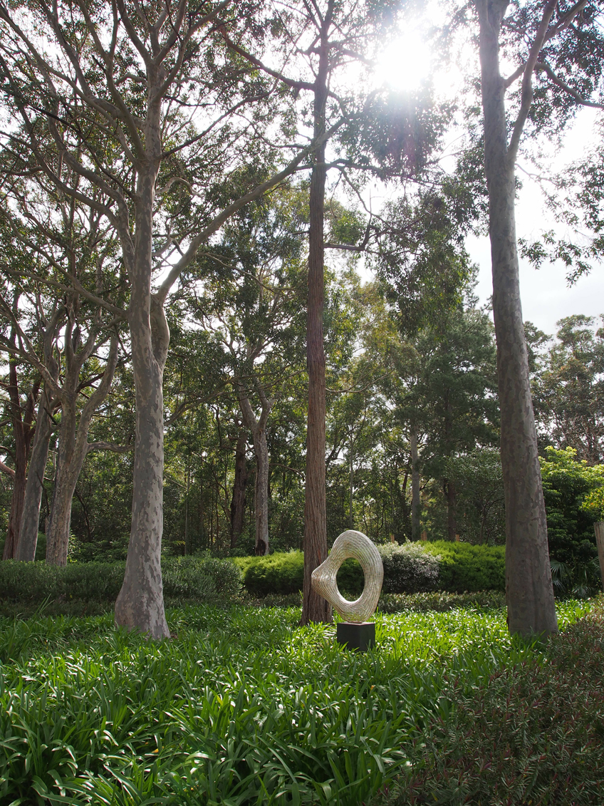 This stunning sculpture shows the importance of siting works in the garden. It is nestled into a clearing of spotted gum and surrounded by a lake of lush