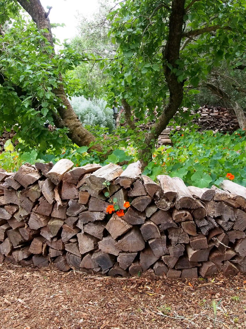 Gardeners are forever looking for clever solutions to everyday problems in the garden. These are a few that impressed me with their ingenuity this year. Below: These wood piles make swooping and curving low walls through which nasturtium ramble.