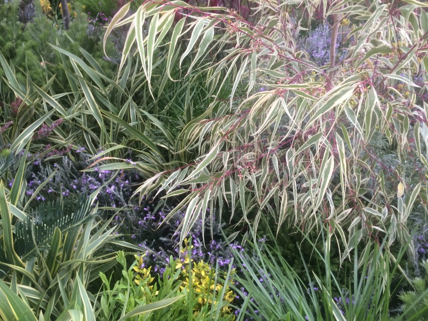 This versatile tree, with its pretty, ribbon-like, creamy edged leaves frosted with pink, adds brilliant texture and colour contrast to the back of a garden. Prune to the size that suits, no further work required. Photo - Angus Stewart