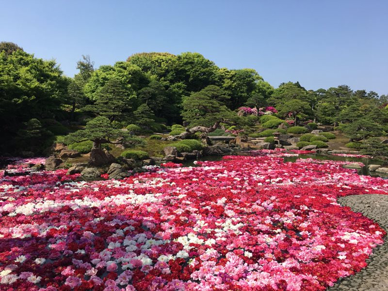The peony growers of Daikonshima Island in Shimane Prefecture grow more than two million peony blooms for the cut flower industry every year, and for one week in May, the pond in the beautiful Yushien Garden on Daikonshima is covered with floating peony blooms.