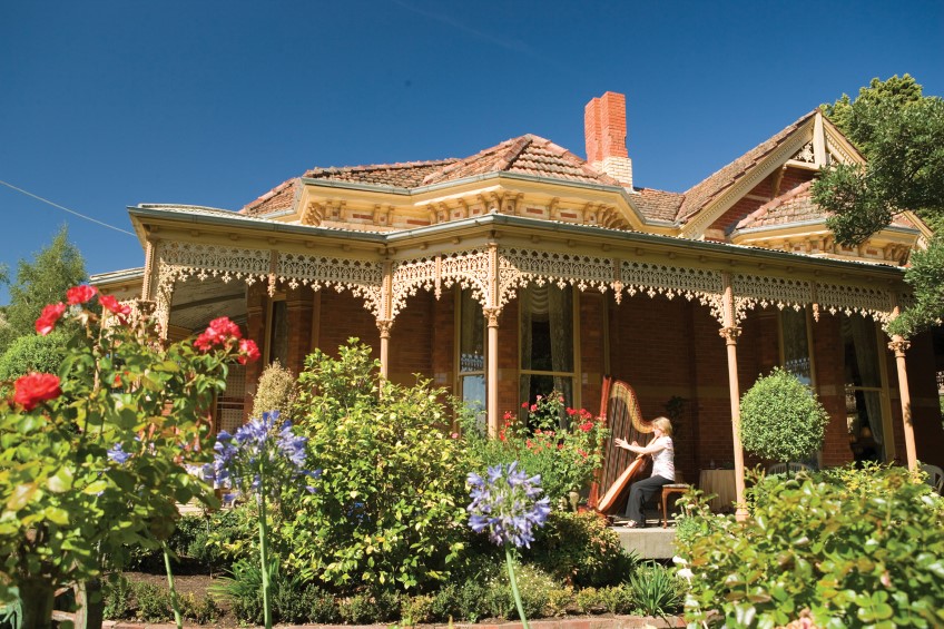 old colonial homes of Castlemaine are noted for their early Australian architecture and gardens are a diverse lot, including large town gardens, small