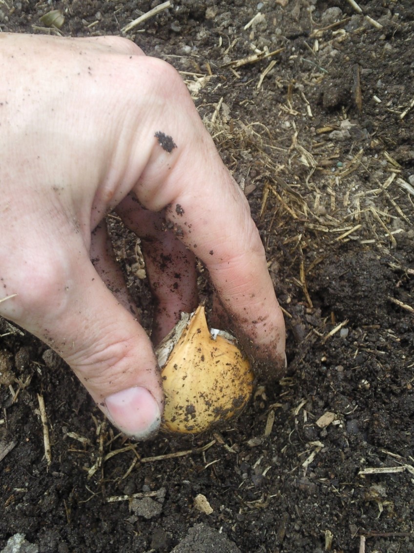 Step 1: Garlic needs friable, well-drained soil and full sun. They will be in the garden throughout winter so it is a good idea to mound the soil so it doesn't retain too much moisture that could cause the bulbs to rot. Dig in compost and a cup of blood and bone per square metre.