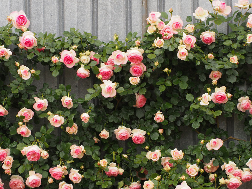 do this, train the main canes of the rose horizontally or diagonally rather than straight up their support. The more horizontal the main cane, the