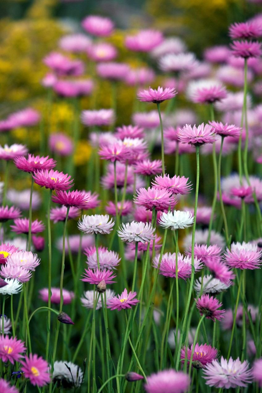 Try flannel flowers, everlastings, or Sturt desert pea (Swainsona formosa) with its bold whorls of glossy, deep-red flowers. This beauty can be