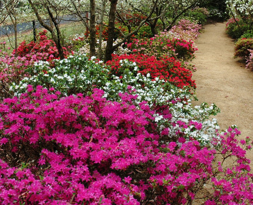 An abundance of colour in spring with azalias under dogwood. Photo - Sue Tapping