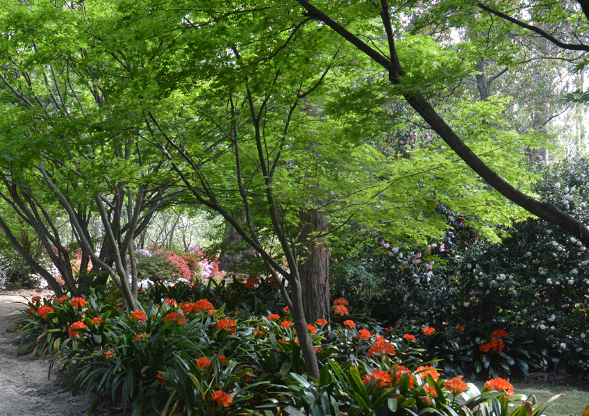 Clivias under the grafted maples. Photo - Sue Tapping