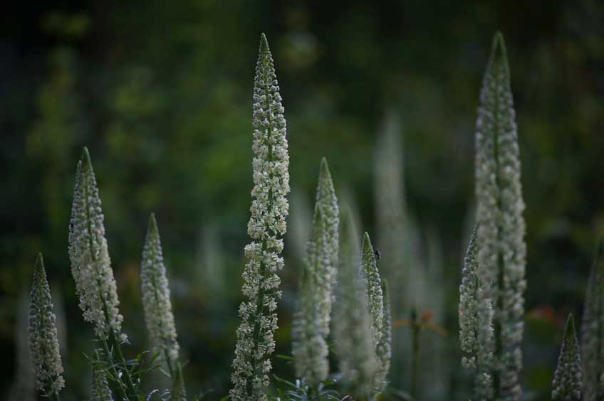 A friend of Dame Elisabeth gave her seed of this and it is a favourite companion for our old fashioned roses, with late-spring 60cm tall white flower spikes