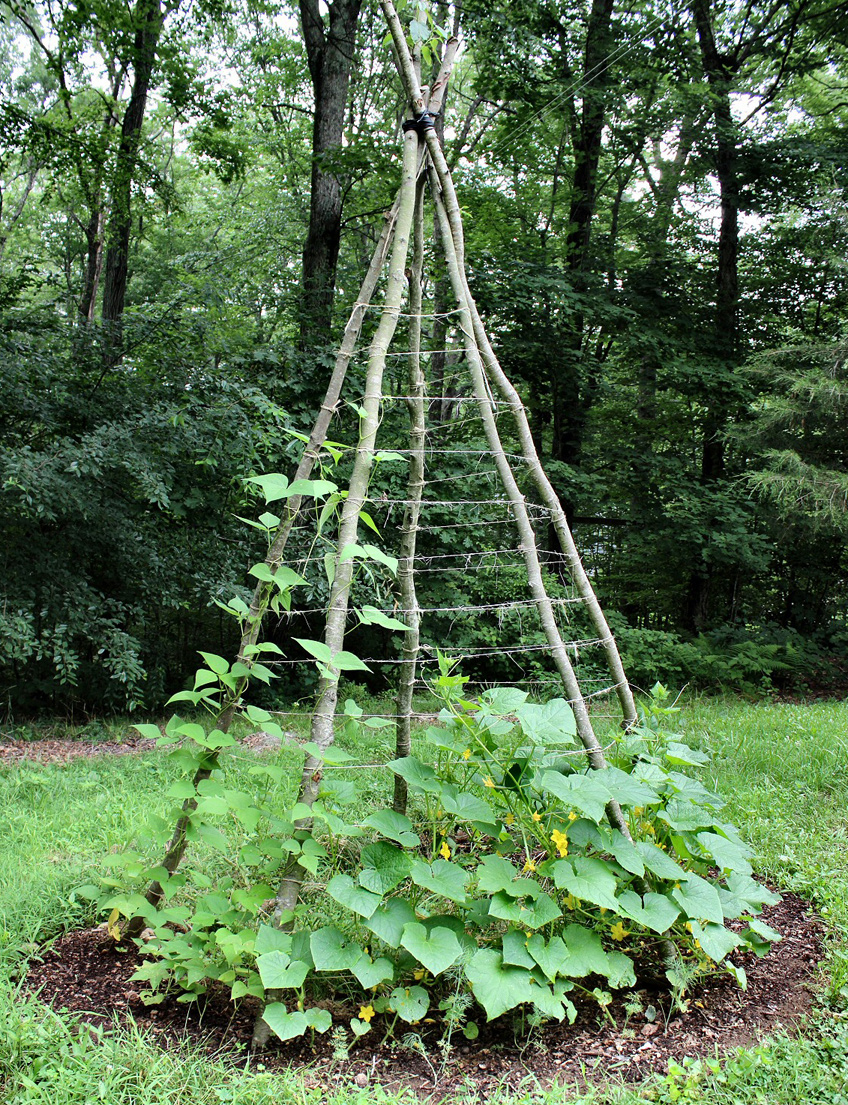 Our summer veg tepee will have you harvesting 36kg of vegetables from one square metre over three months! Make a six-pole-bamboo-tepee as high as you can,