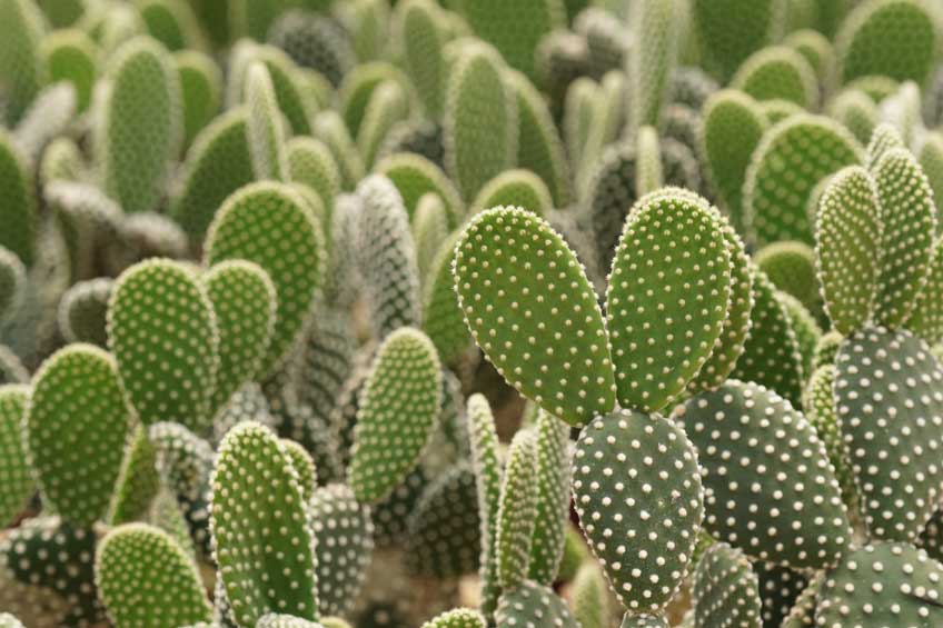 This dwarf prickly pear has bunny-shaped ears covered in spots that make it a favourite. The pads are not covered in spines, but with white or yellow aureoles