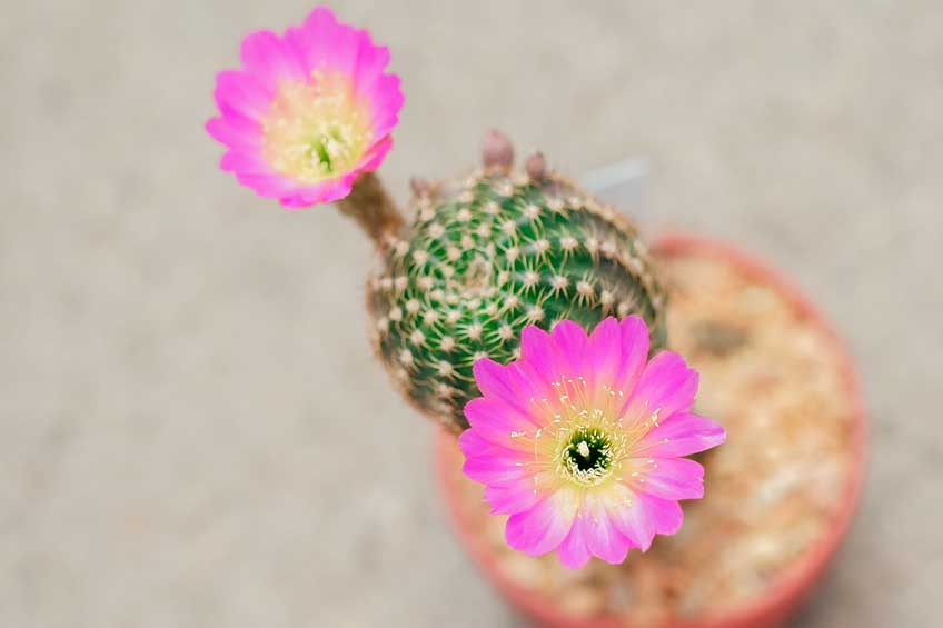 Perfect for beginners, this cactus blooms frequently and readily sends out offshoots, forming attractive mounds in just 2-3 years. The pink or red flowers