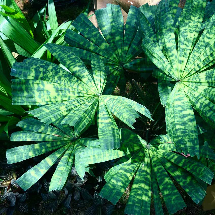 Not an aroid, but a rare variety of fan palmfound in deep shade in the jungles of Sarawak, the sharply cut spherical fronds make this highly sought after,