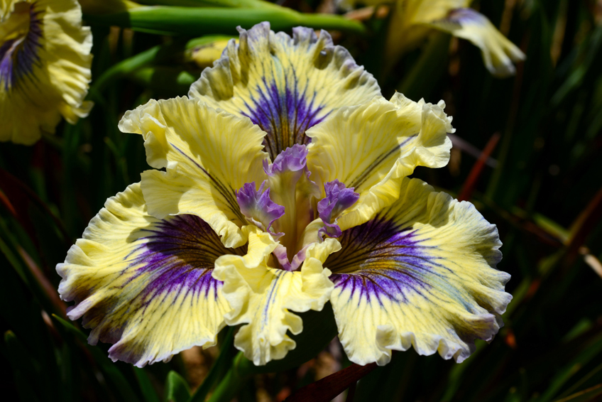 ID: Tall bearded (TB) are the most popular in this group. Many are bi-coloured with the central ‘standard’ petals and pendulous ‘fall’