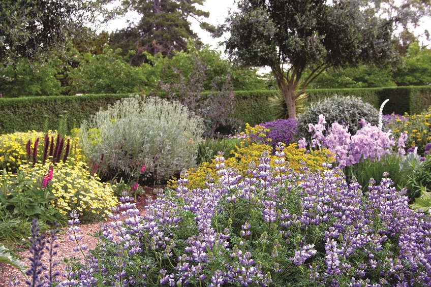 in full flower, and has a Mediterranean feel courtesy of an irregular planting of olive trees in the central body of the garden.