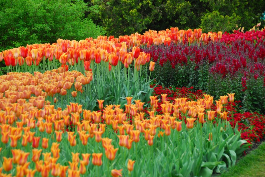 The tulip planting shows great understanding of individual varieties; and they're out as soon as they're past their peak. Photos - Michael McCoy