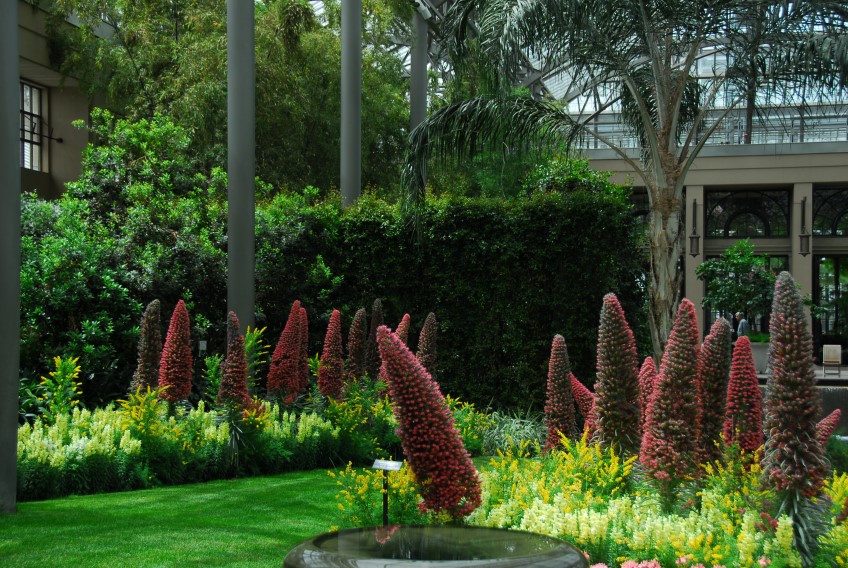 We saw a gob-smacking display of the pink/red Echium wildprettii. Most gardeners will be familiar with Pride of Madeira with its spring spires