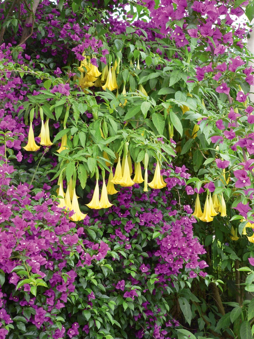 'Aztec Gold' growing through bougainvillea in Alistair's garden. Photo - Alistair Hay