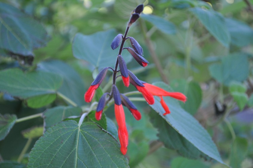 Say, dry shade, under a pine tree, a very challenging position! And what’s perfect for that is Salvia cacaeliifolia from Mexico. It grows about