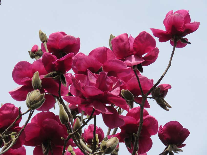 The magnolia ‘Felix’. It was a real step forward in red magnolias -bigger flower, richer colour, more showy, pyramidal good sturdy growth. It was what