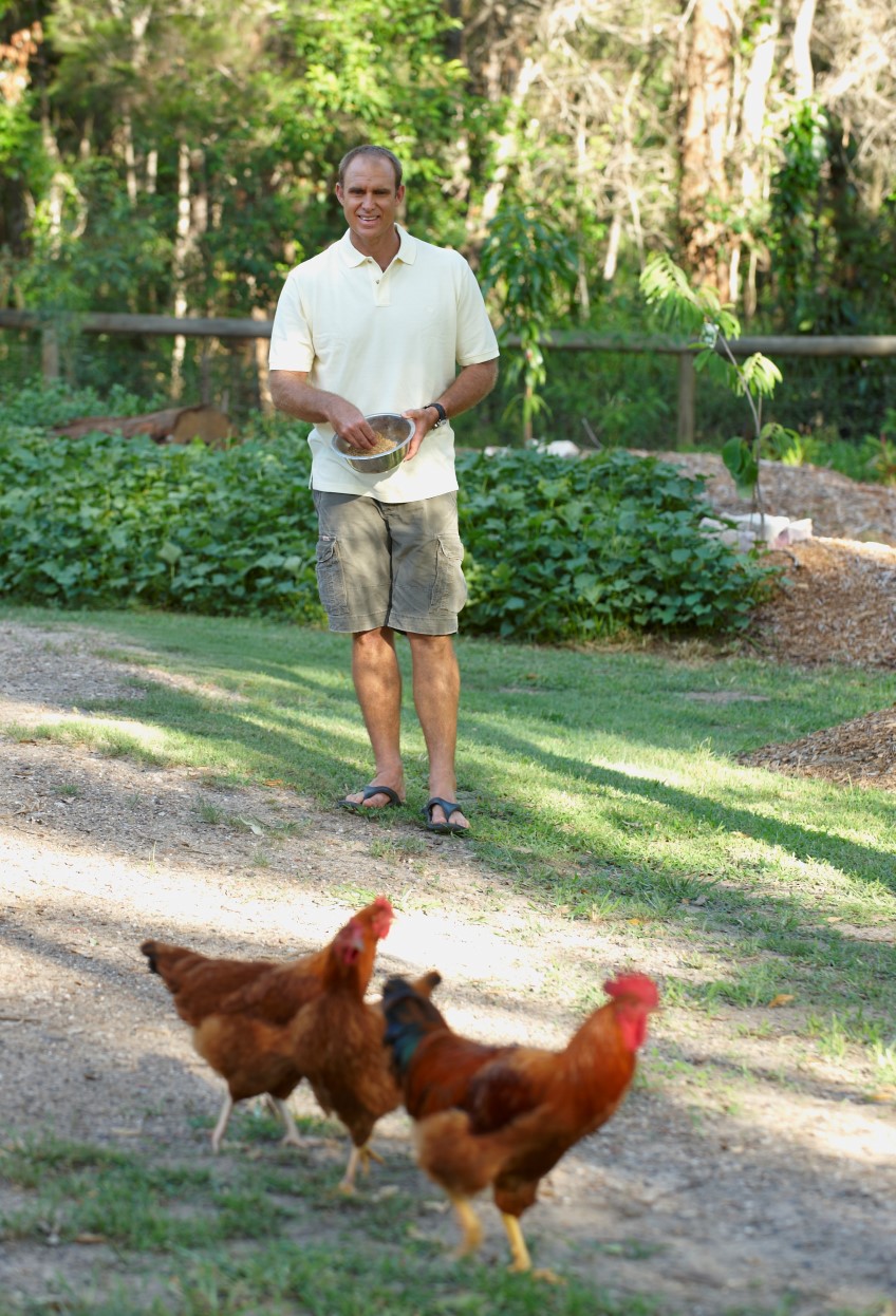Feeding the chooks. Photo - Matthew Hayden