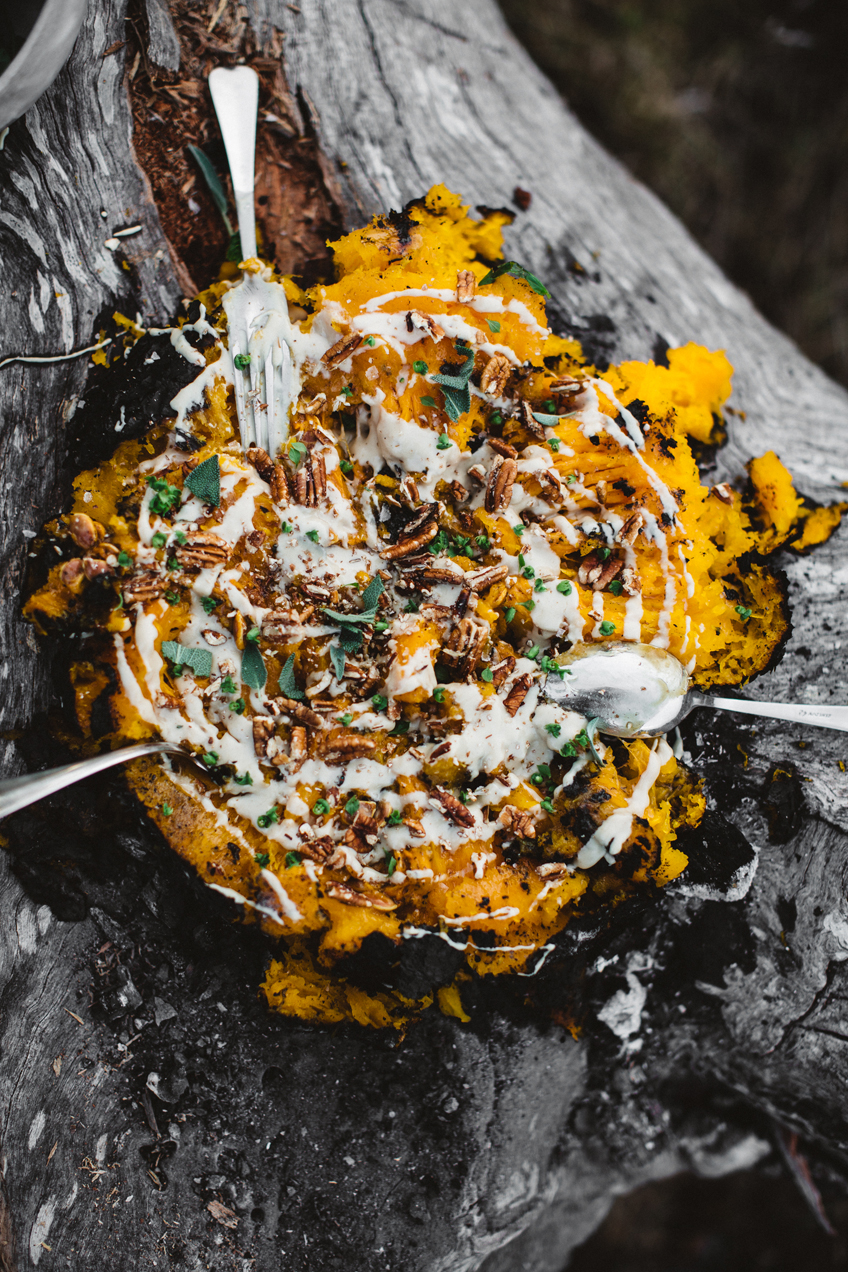 A splendid vegetarian feast of roast pumpkin, walnuts and sage. Photo - Luisa Brimble