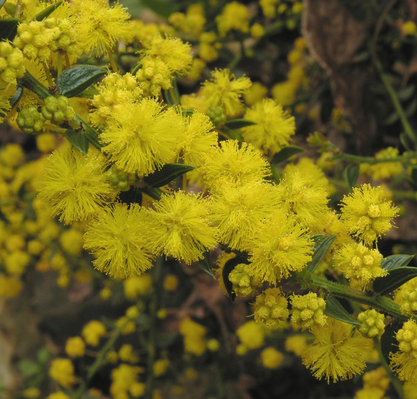 A low, spreading plant with prickly foliage and fantastic vivid yellow balls of flower right through winter. The prickly leaves provide refuge for birds